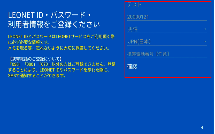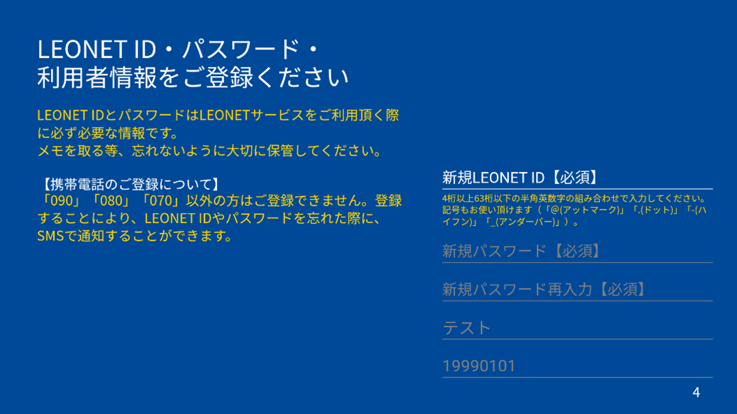 또한,여기서 설정한 ID와 패스워드는, 이후 부터 고객님의 LEONET ID와 패스워드가 되므로 반드시 보관하여 주시기 바랍니다.