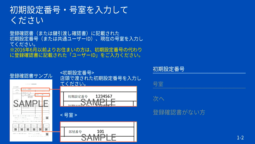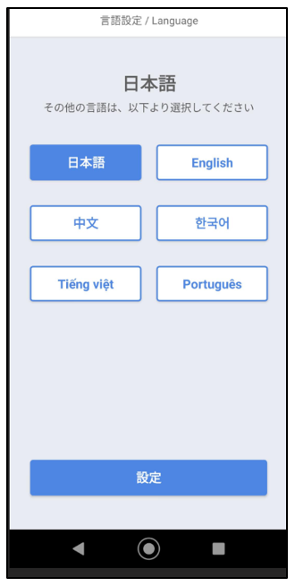 1)「言語設定」(언어 설정) 「利用規約の同意」(이용 규약 동의)를 진행 하시면 아래와 같은 화면이 표시됩니다.