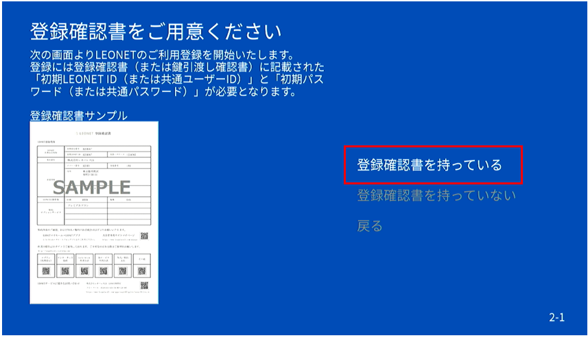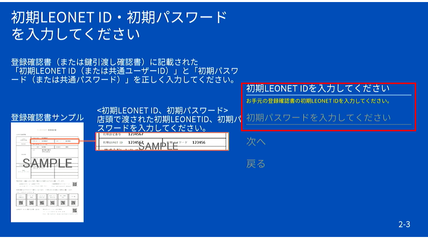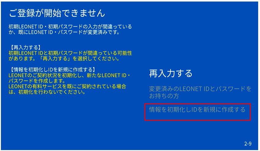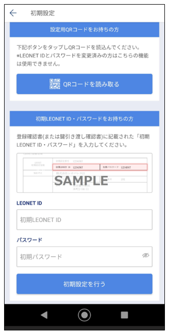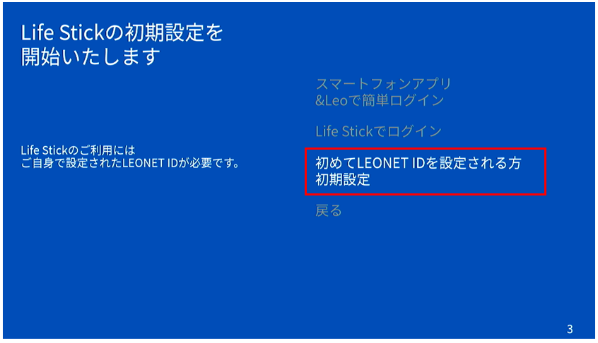 「初めてLEONET IDを設定される方初期設定」(처음 LEONET ID를 설정하는 분 초기 설정)을 선택합니다.