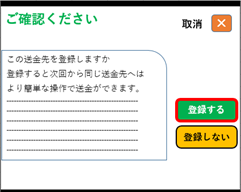 송금처를 등록하시면 다음 송금부터는 ④에서 『登録済みの送金先』를 선택하여 등록한 계좌 정보를 불러올 수 있습니다.