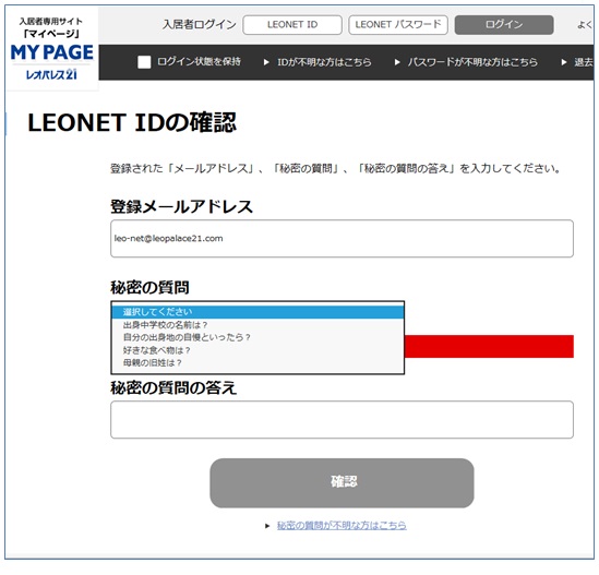 휴대전화 메일주소를 입력한 고객님께서 스팸 메일 방지 설정을 하신 경우 「@leo-net.jp」로부터 수신이 가능한 상태로 해주시기를 부탁드립니다.