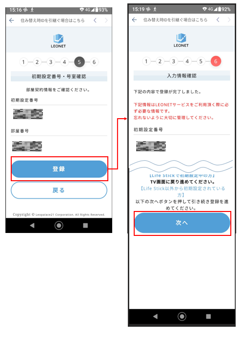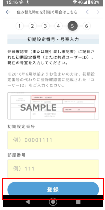2)초기설정번호와 방번호(호실):이사한 방의 계약을 진행하면서 드린 등록확인서(登録確認書)에 적힌 번호를 사용합니다.